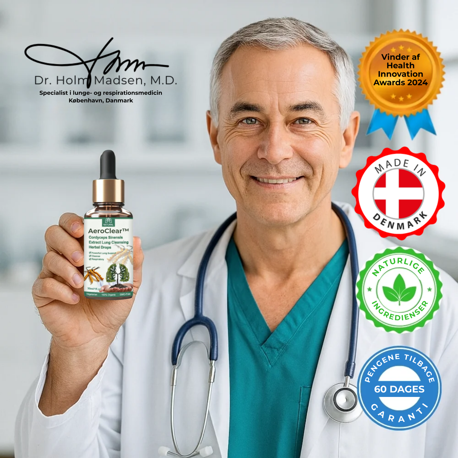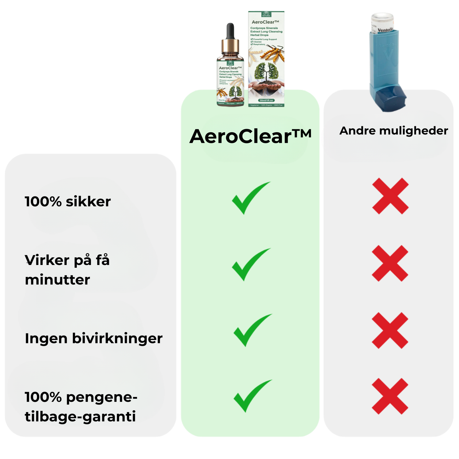 AeroClear™ opløser slimhindeblokeringer på få minutter, genopretter naturlig vejrtrækning og eliminerer trykket i brystet uden bivirkninger eller komplicerede rutiner.