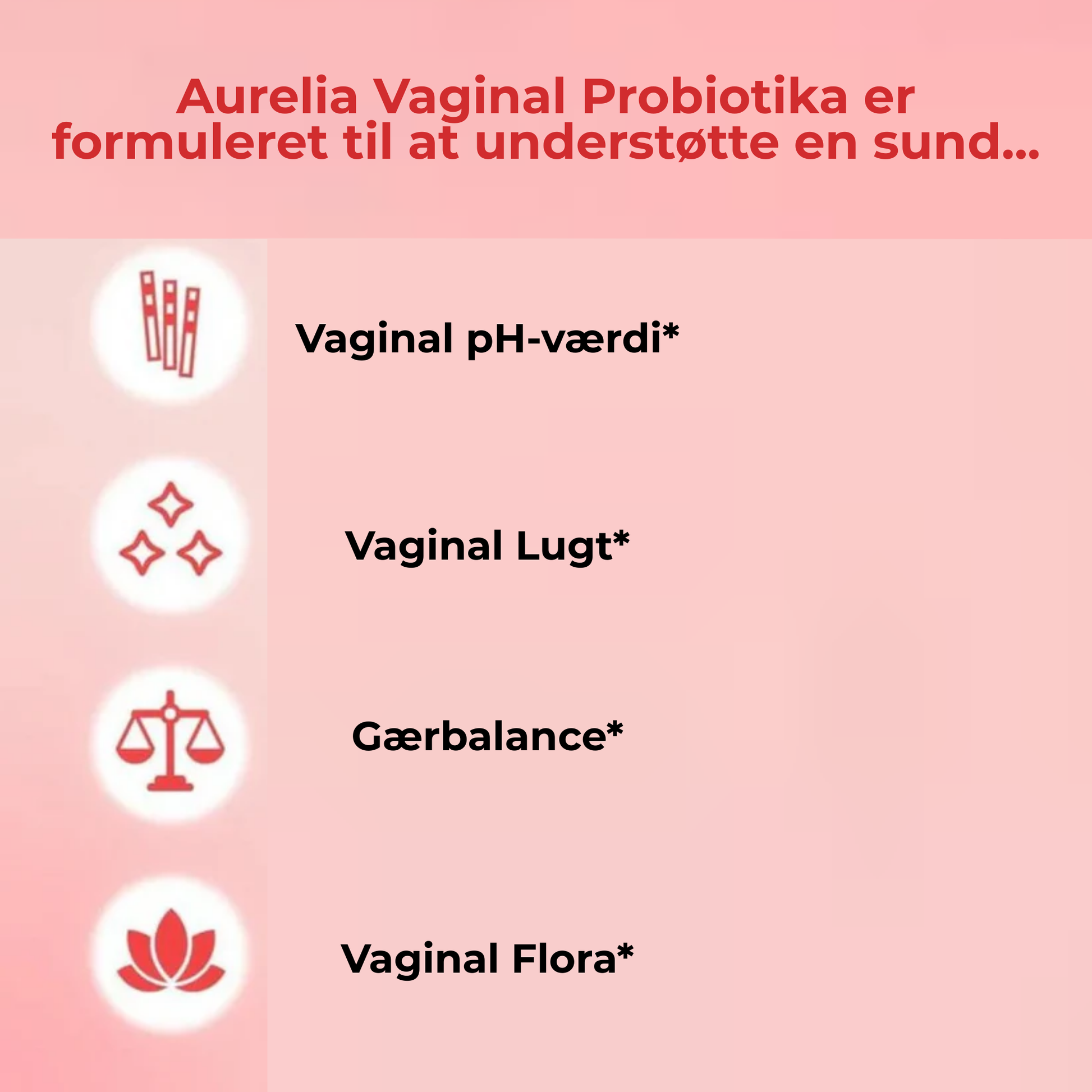 Aurelia Vaginal Probiotic anbefales til kvinder, der ønsker at opretholde en sund balance mellem gær og bakterier i deres skede. Aurelia Vaginal Probiotic er sikkert for kvinder over 18 år.