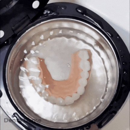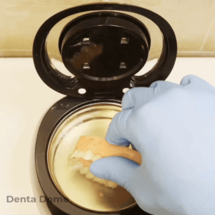 Denta Dome Ultrasonic UV Protese-dome bruger en kombination af ultralydsvibrationer og ultraviolet lys til at rengøre og desinficere tandproteser. Her er en generel gennemgang af processen: