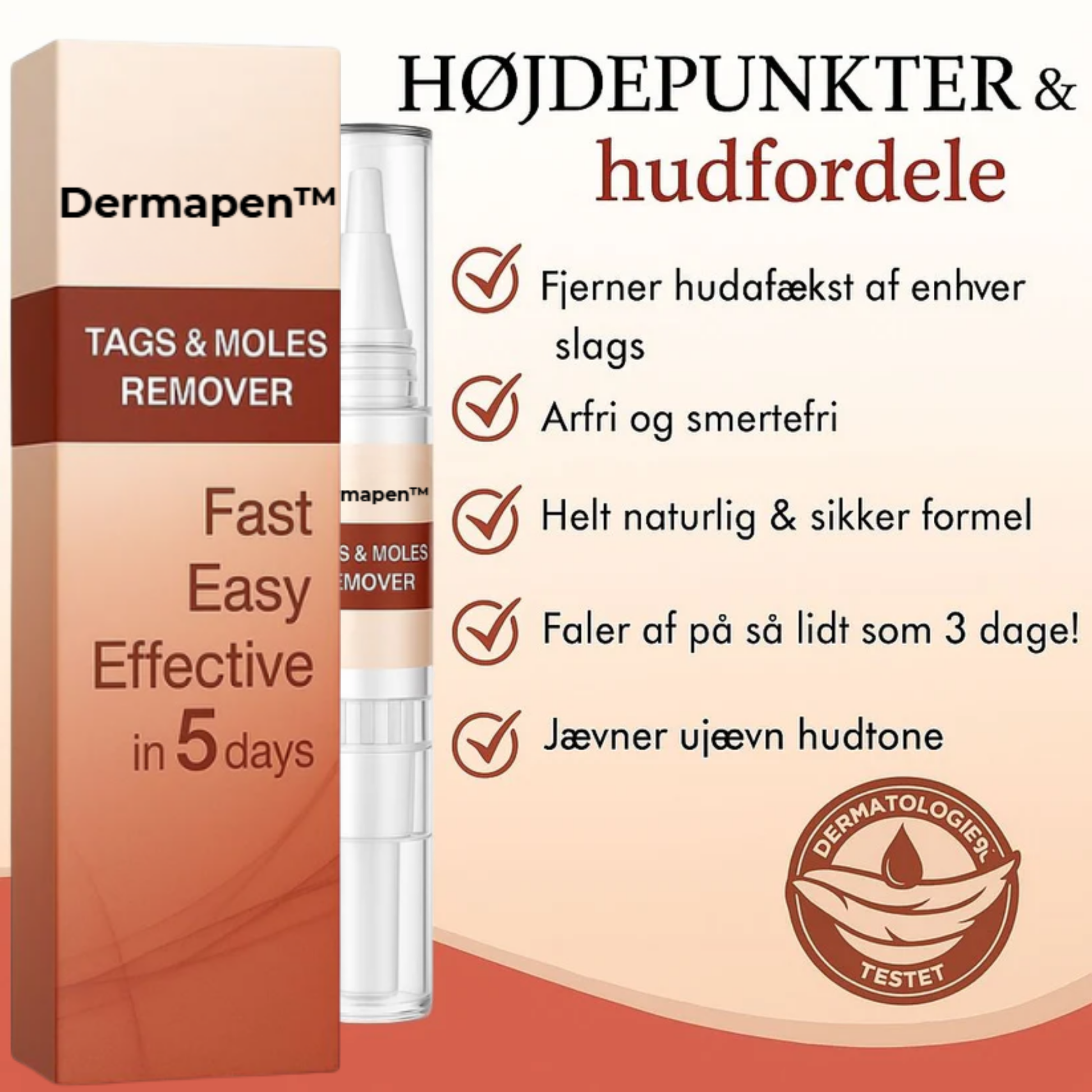 Dermapen™ er en topisk løsning, der er designet til effektivt at fjerne vorter og alderspletter, hvilket hjælper med at genoprette en glattere og mere ensartet hudtone.