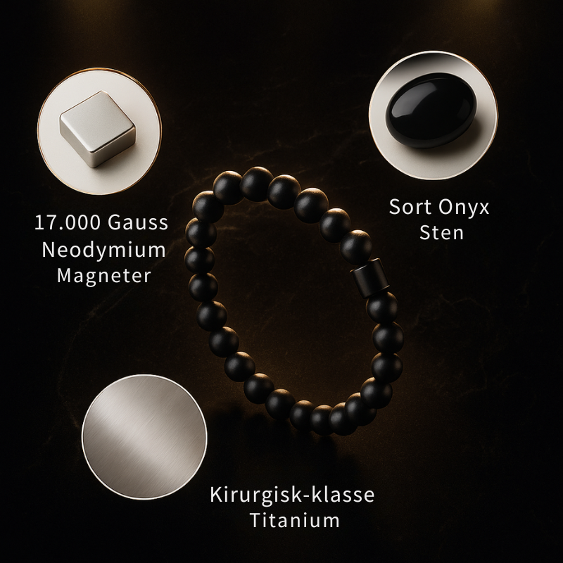 - Sort Onyx Sten – Stabiliserer magnetfeltet, forbedrer terapeutisk effekt