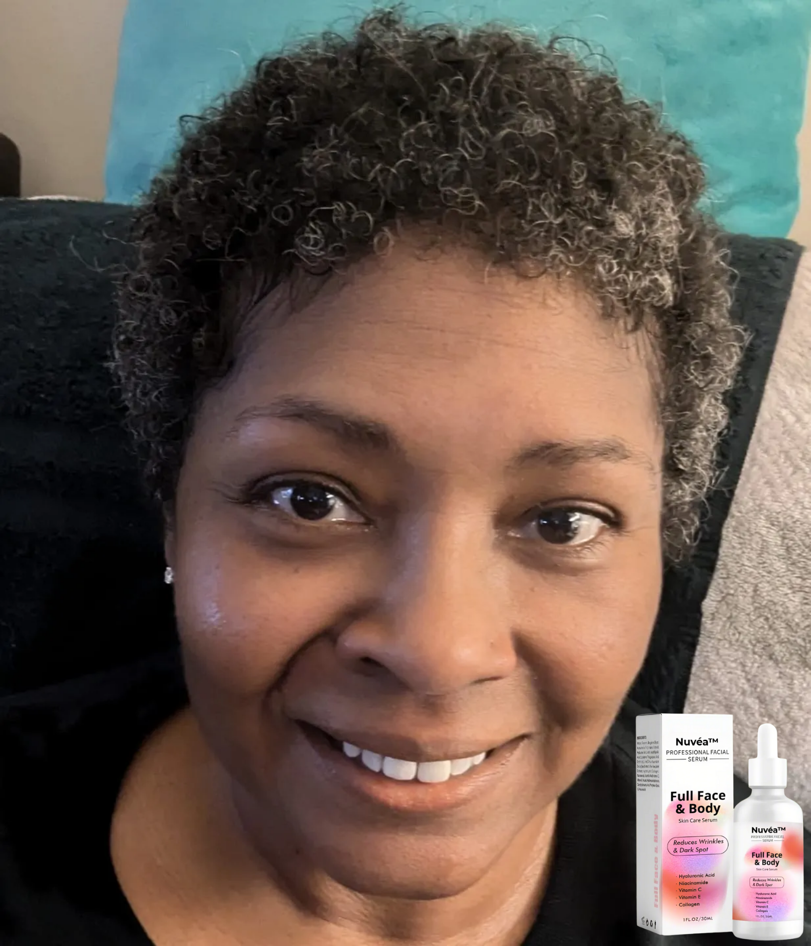 "Efter en vens anbefaling besluttede jeg at prøve Nuvéa™, og jeg kunne ikke være mere tilfreds med beslutningen. På bare tre uger har jeg bemærket en betydelig reduktion af rynker i ansigtet og en forbedring af min hudtone. Serummet er utrolig fugtgivende, hvilket er perfekt til min tørre hud, og det absorberes hurtigt uden at efterlade en klæbrig rest. Det har ikke kun været effektivt til at reducere dybden af mine rynker, men også til at forbedre den generelle sundhed i min hud. Jeg er begejstret for de synlige forandringer og planlægger at gøre dette serum til en permanent del af min hudplejerutine."